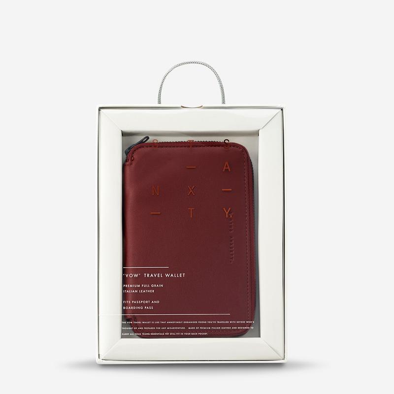 Products DescriptionThe Vow travel wallet is like that annoyingly organised friend you've travelled with before who's thought of and prepared for any misadventure.? ?Made of premium Italian leather and designed to carry all your travel essentials yet?still fit in your back pocket.